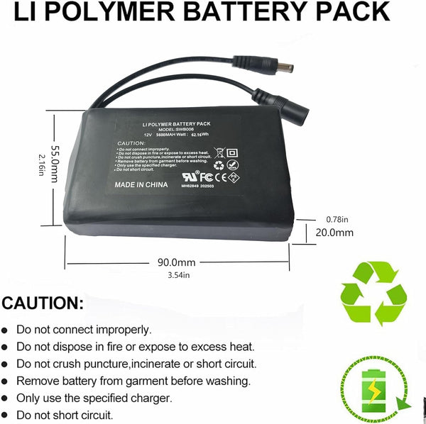 The replacement 12 V Lithium Ion batteries are a great accessory for long trips, extremely cold days spent outside or as a backup battery to all FIRed Up heated Vests....